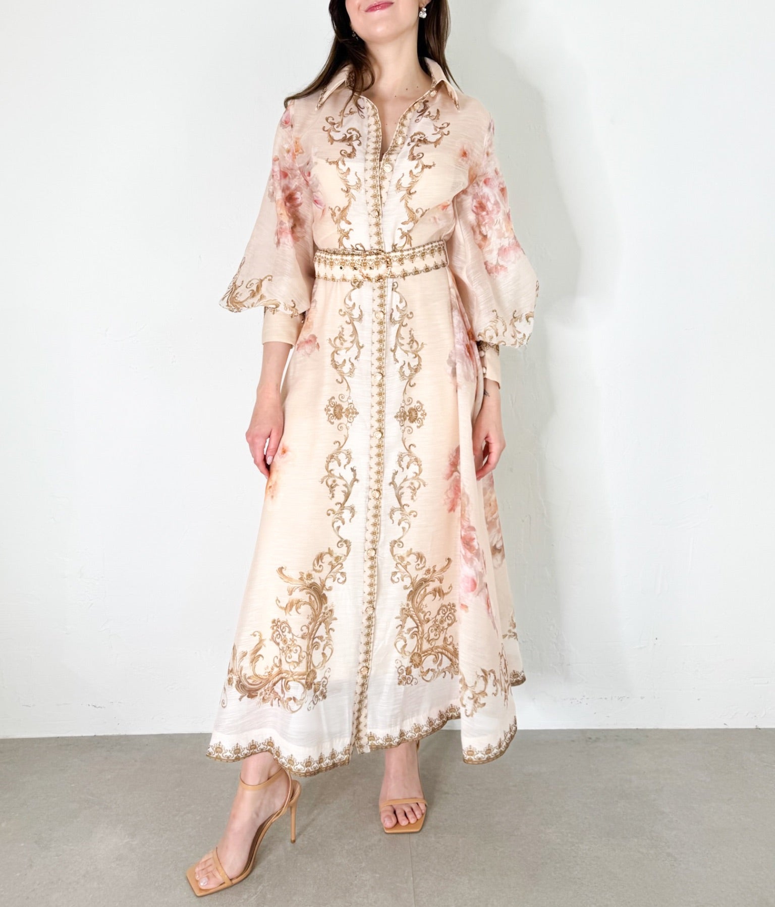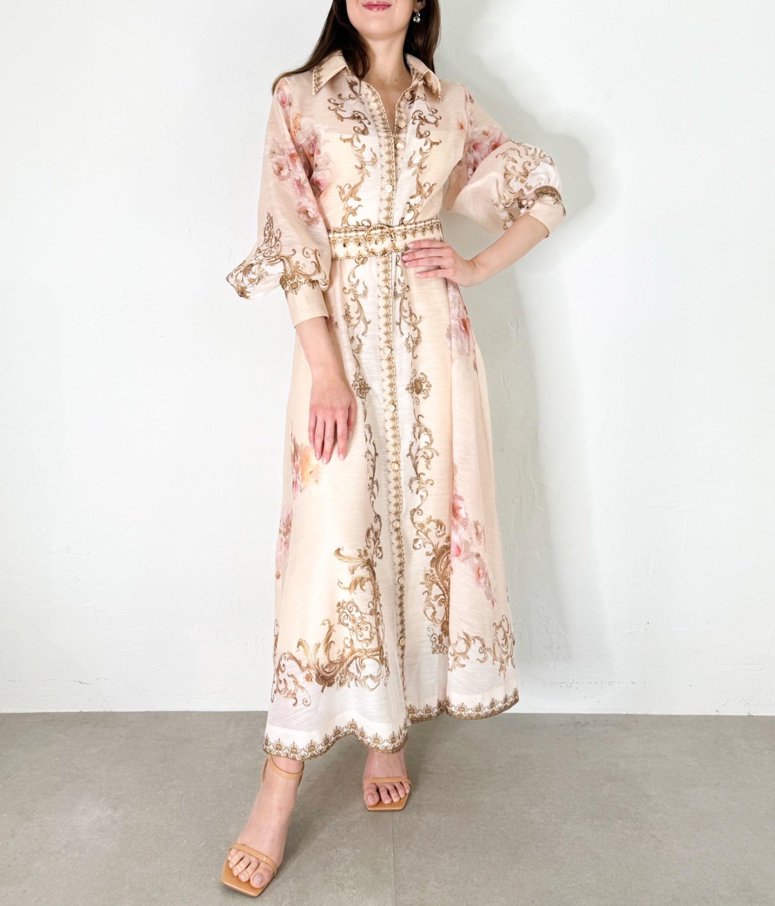 Ashley Dress in Beige/Multi