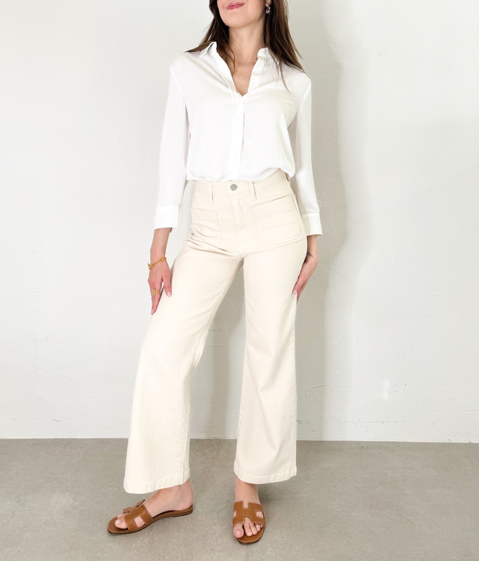 Giselle Wide Leg Jeans in Cream